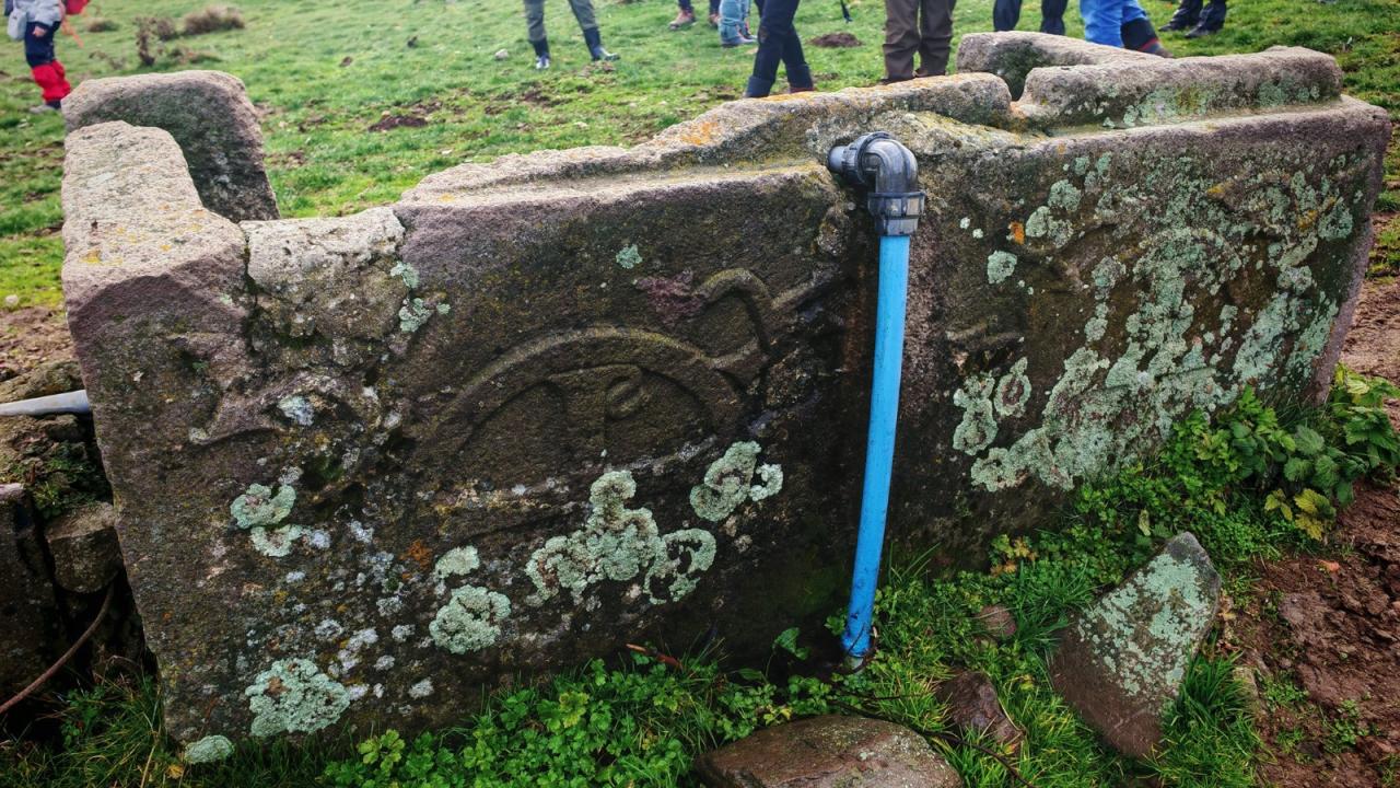 Yürüyüş grubu tarafından fotoğraflanan lahitte haç işareti kabartmaları dikkat çekti. Lahidin bir bölümünün ise hayvanların rahat su içmesi için kesildiği fark edildi.