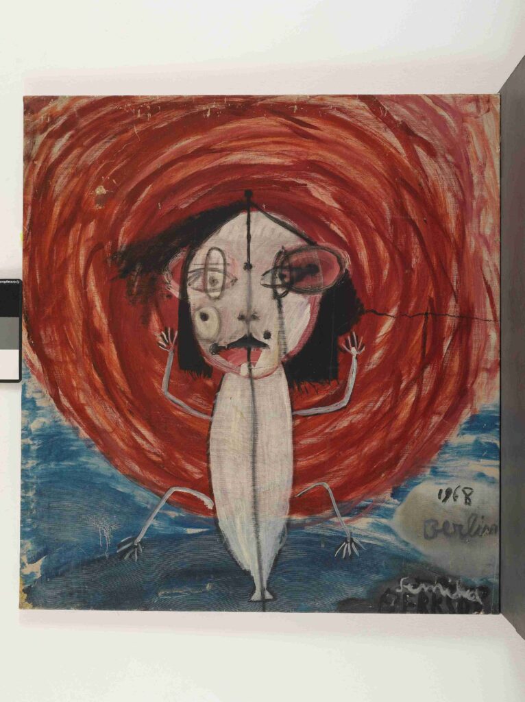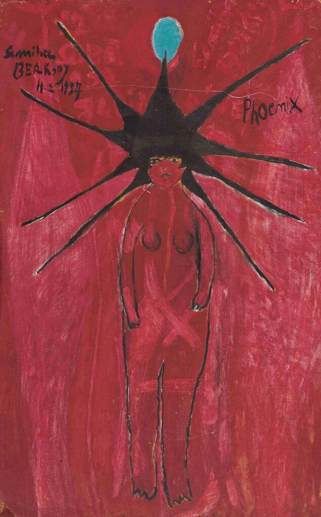 Erken dönem desenlerinden 1950’ler ve sonrası sergi, Berksoy’un sanatı bir meslekten çok hayat tarzı olarak yürüttüğünü gösteriyor. Sanatçının resim, müzik, tiyatro ve sinema arasındaki çok yönlü ilişkisi; mektuplar, arşiv belgeleri ve sahne kayıtları ile destekleniyor. Uzun yıllar resim yaptığını gizlemesi, ilk kişisel sergisini Berlin’de açması ve Paris’te sürdürdüğü serüven, sergide önemli bir arka plan oluşturuyor.